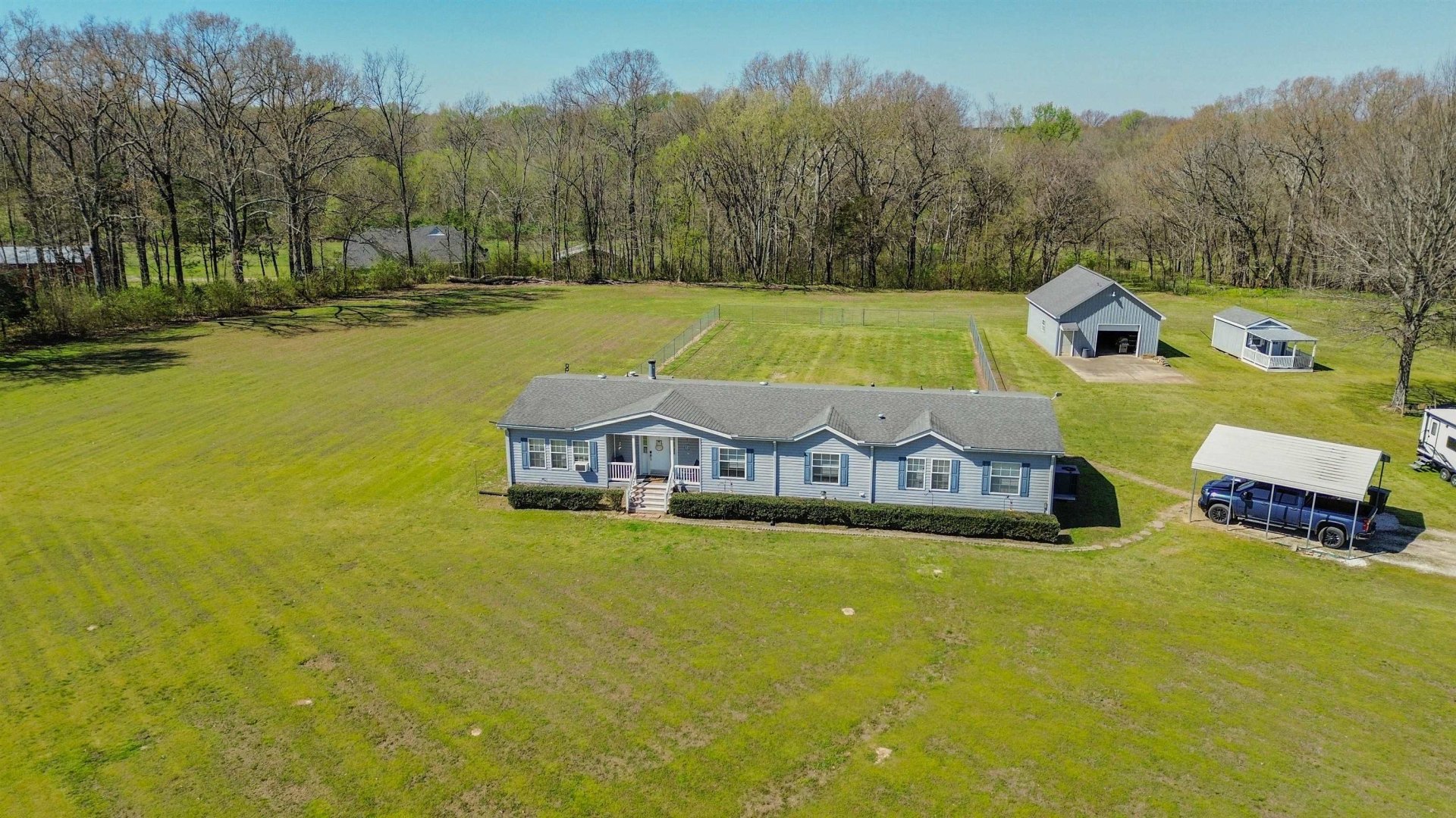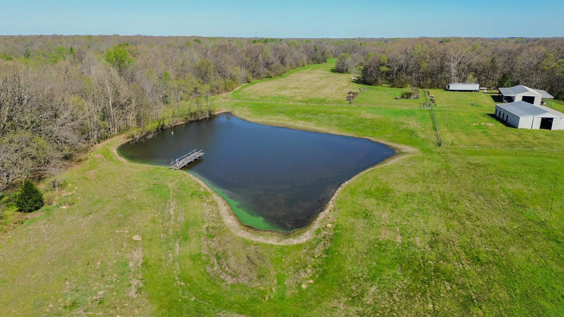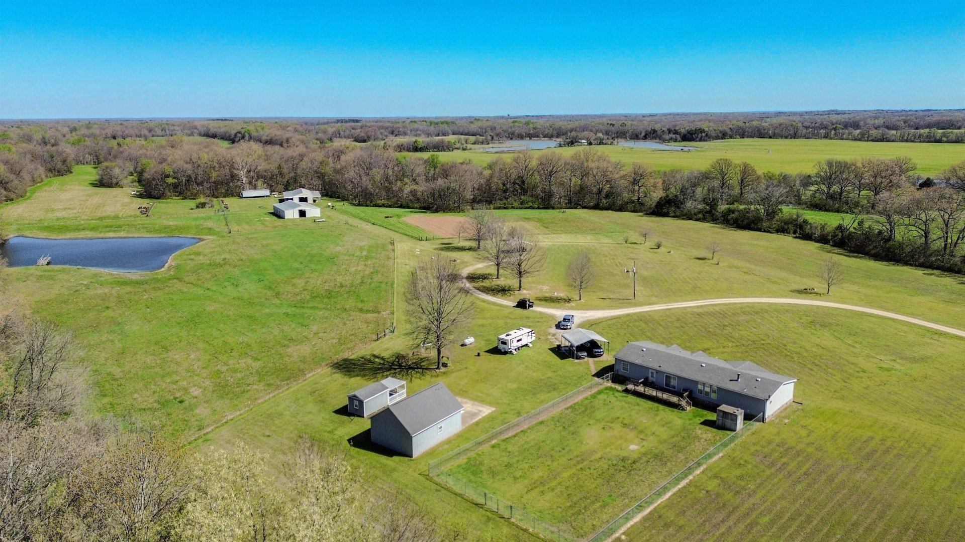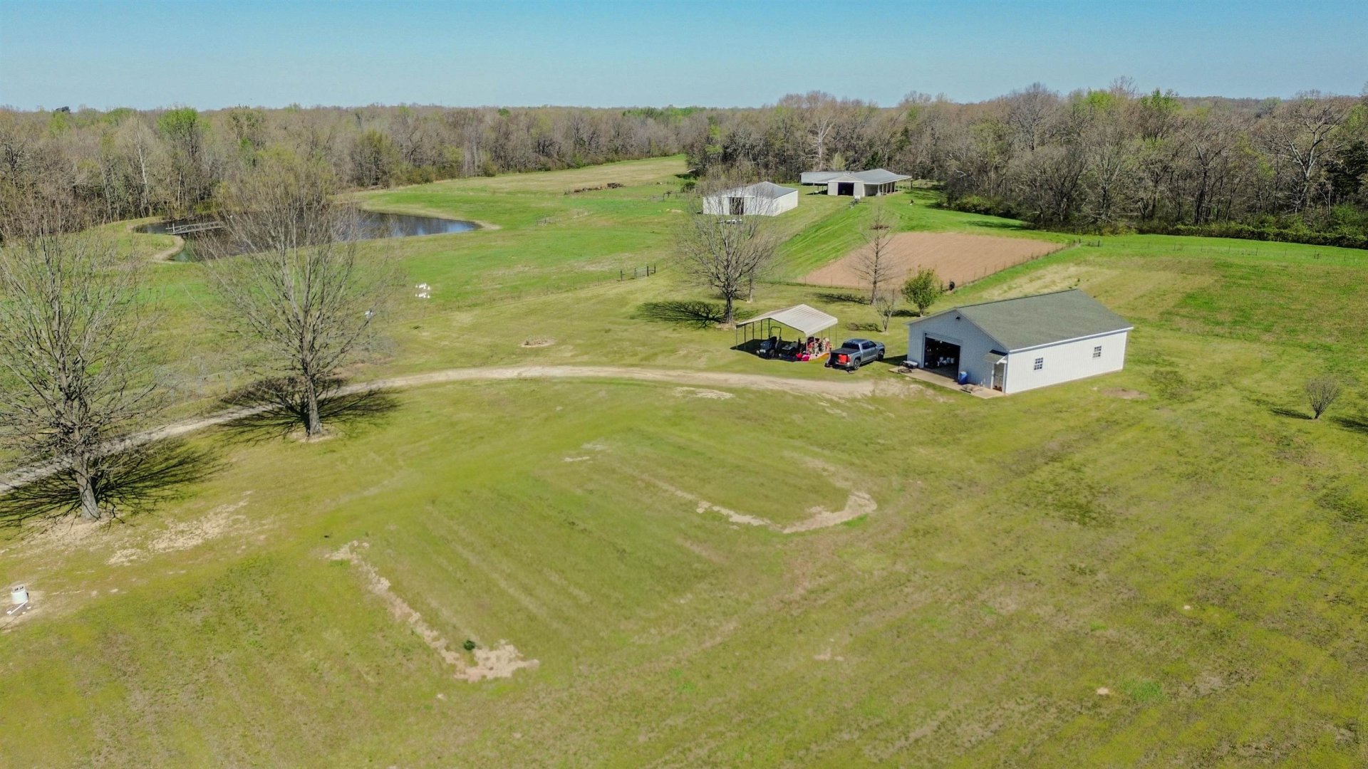 This exceptional 152.34-acre farm consists of three adjoining tracts and includes approximately 48 acres of income-producing cropland. The remaining acreage is well maintained with quality pasture, established fencing, maintained trails, ponds, creeks, wooded areas, and a blend of rolling hills and bottom ground offering both functionality and versatility. The property extends approximately 6,600 feet in depth (1.2 miles), providing a high level of privacy and ample usable space for a variety of uses, including livestock, recreation, hunting, and agriculture. Additional improvements include dog runs and training pens, multiple barns, sheds, workshops, and access to fiber internet. Two homes are located on the property, making it ideal for a family compound, guest accommodations, or potential rental income. There is also ample space to build a primary residence tailored to your vision.