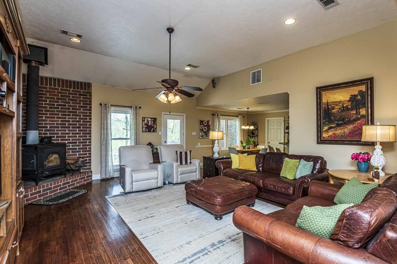 Great house on 2.5 acres at the end of the street adding some privacy. Enjoy FRONT PORCH SITTING or RELAXING on SPACIOUS back DECK OVERLOOKING THE FOREST. 5 bedrooms. 3.5 baths plus bonus. 3 bedrooms down including Primary suite. Split bedrooms for possible multi generational use. Stainless kitchen appliances stay. Kitchen pantry. Nice laundry. Home is upgraded with Anderson doors and windows. Roof approx. 3-4 yrs. Seller is downsizing so some furniture may be available.