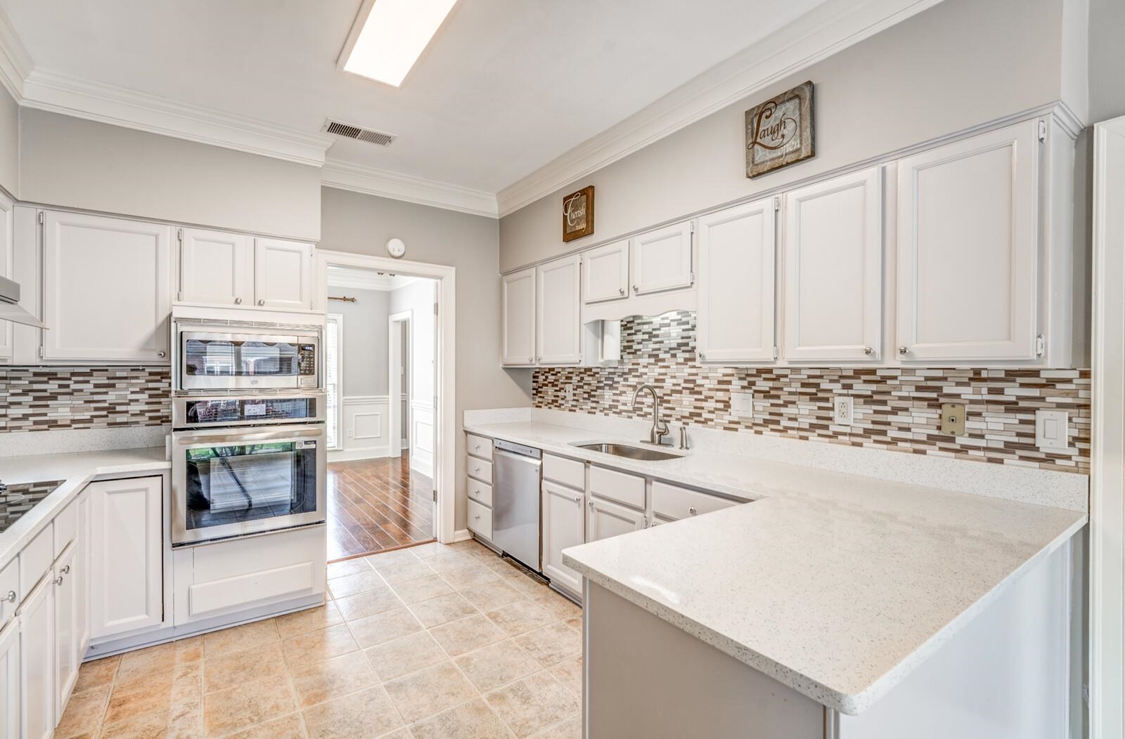Wonderful updating & remodeling in highly desirable Duntreath Subd. off Johnson Rd near Wolf River Blvd. 4BR/2.1BA/2 Car Gar on .34 acres. Custom trim, crown molding thruout. Minimum 9' SMOOTH ceilings down. Remodeled Kitchen w/refinished Cabinets, Mosaic tile back splash at QUARTZ counter tops! Plank Hardwood floors thruout, tile in Baths. NO CARPET! Floor Plan in photos. 15x19 Great Rm off Formal Entry with French doors to 11x14 Living Rm, doorway to Kitchen & Brkfst Rm. 11x14 Dining Rm off Entry w/privacy double doors to Kitchen. Huge 16x18 Primary BR w/coffered ceiling, 8.5' x 11' walk-in closet. Remodeled Luxury Primary Bath w/updated cabinet double vanity w/NEW 7' QUARTZ top, custom tile surround at big whirlpool tub, 3.5' x 5' separate shower w/1x2 tile walls & mosaic accent strip & floor. 11x14 BR2 w/2 closets, 16x11 BR3 and 18x17 BR4 w/walk-in closets. Bath 2 w/new cabinet dbl vanity w/QUARTZ tops. Freezer space in Laundry Rm. Covered & extended Patios at fenced yard. 2 HVACS.