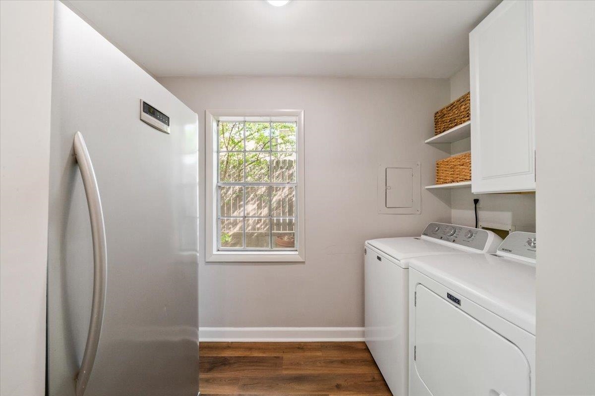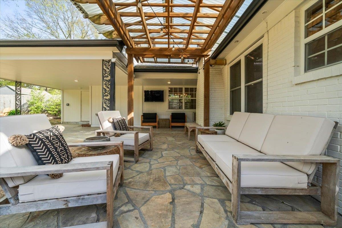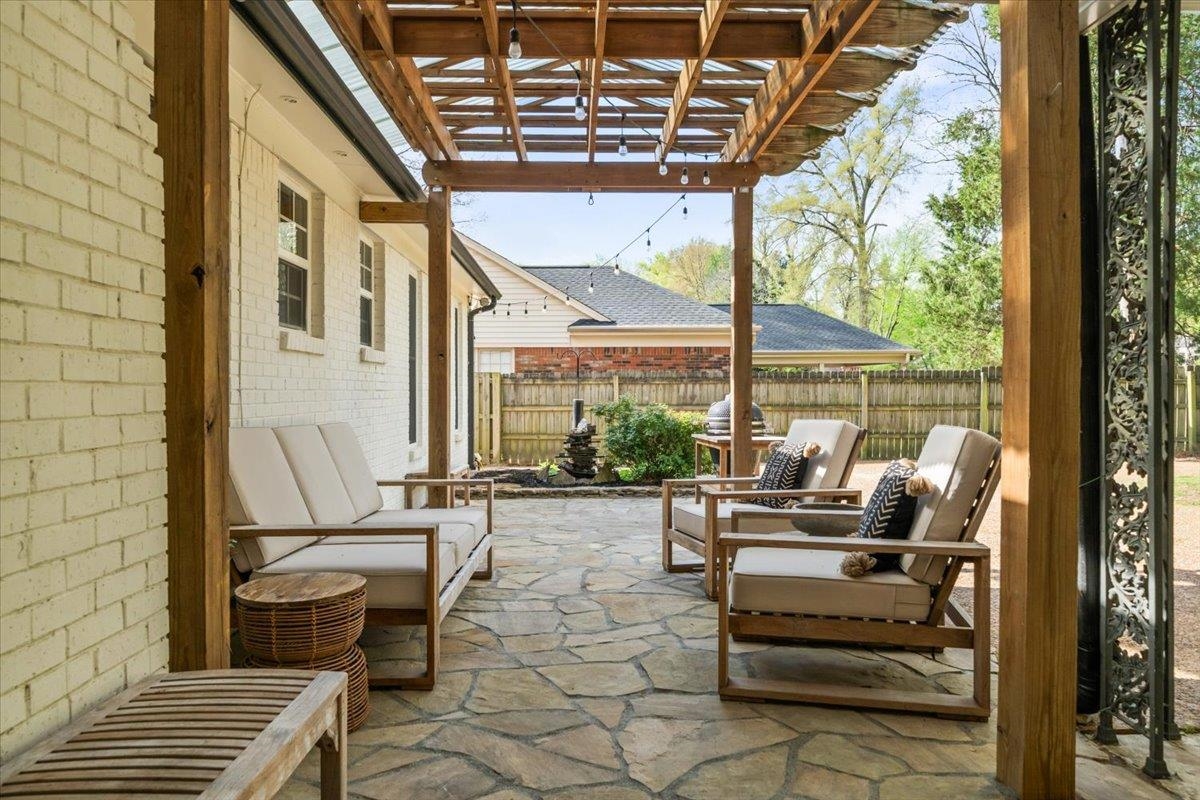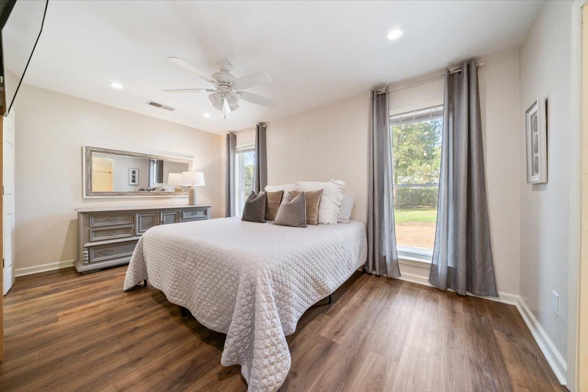 You do not want to miss out on this Germantown Gem! Spacious open-concept dining/living area featuring a built-in bar & private office just off the DR. Updates include new luxury vinyl hardwood flooring, recessed lighting throughout, & brand new water heater (2025). The LR flows seamlessly into the updated kitchen, complete w/ granite countertops, new backsplash, updated hardware, a brand-new dishwasher (2025), & a bright eat-in area w/ abundant cabinetry. Sellers have added a newly constructed laundry room, providing additional SF & functionality. Step outside to your private outdoor oasis—thoughtfully designed with a pergola, stone patio flooring, fountain, back door brick steps, lush landscaping, & a cozy fireplace area. The backyard is fully enclosed with an electronic gate and enhanced by motion-sensor exterior lighting. Ideally located in a peaceful, quiet setting near Howard McVay Park and just minutes (approx. 2.5 miles) from Saddle Creek, Trader Joe’s, dining, and more.