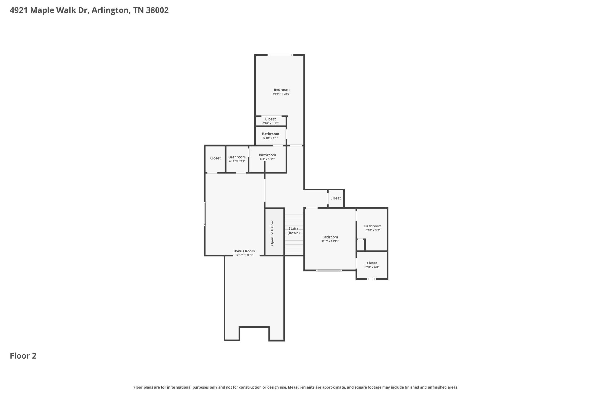 | Second Floor | 3rd Bedroom, 4th or More Bedrooms, 2 or More Baths, Bonus Room, Media Room |