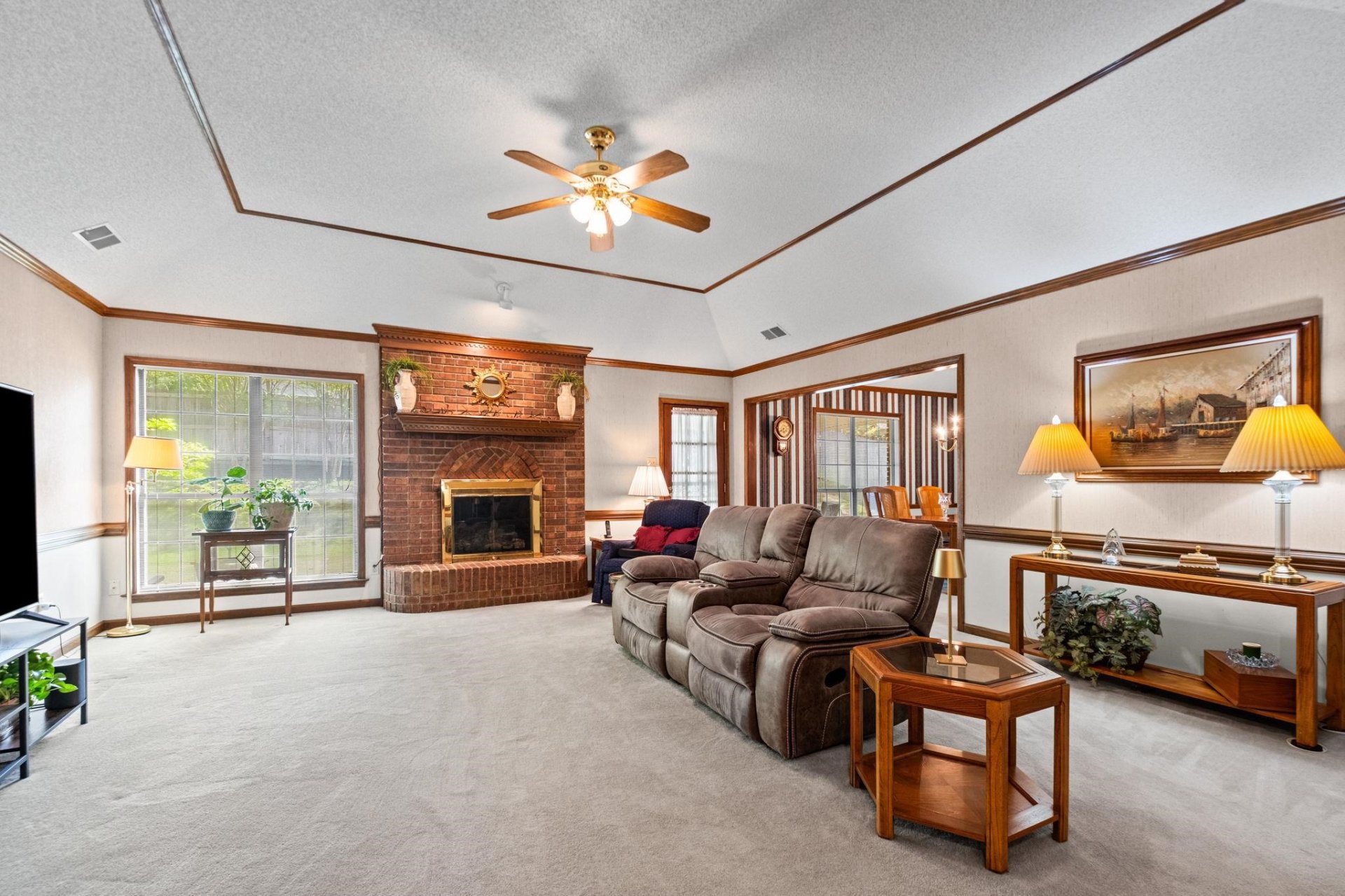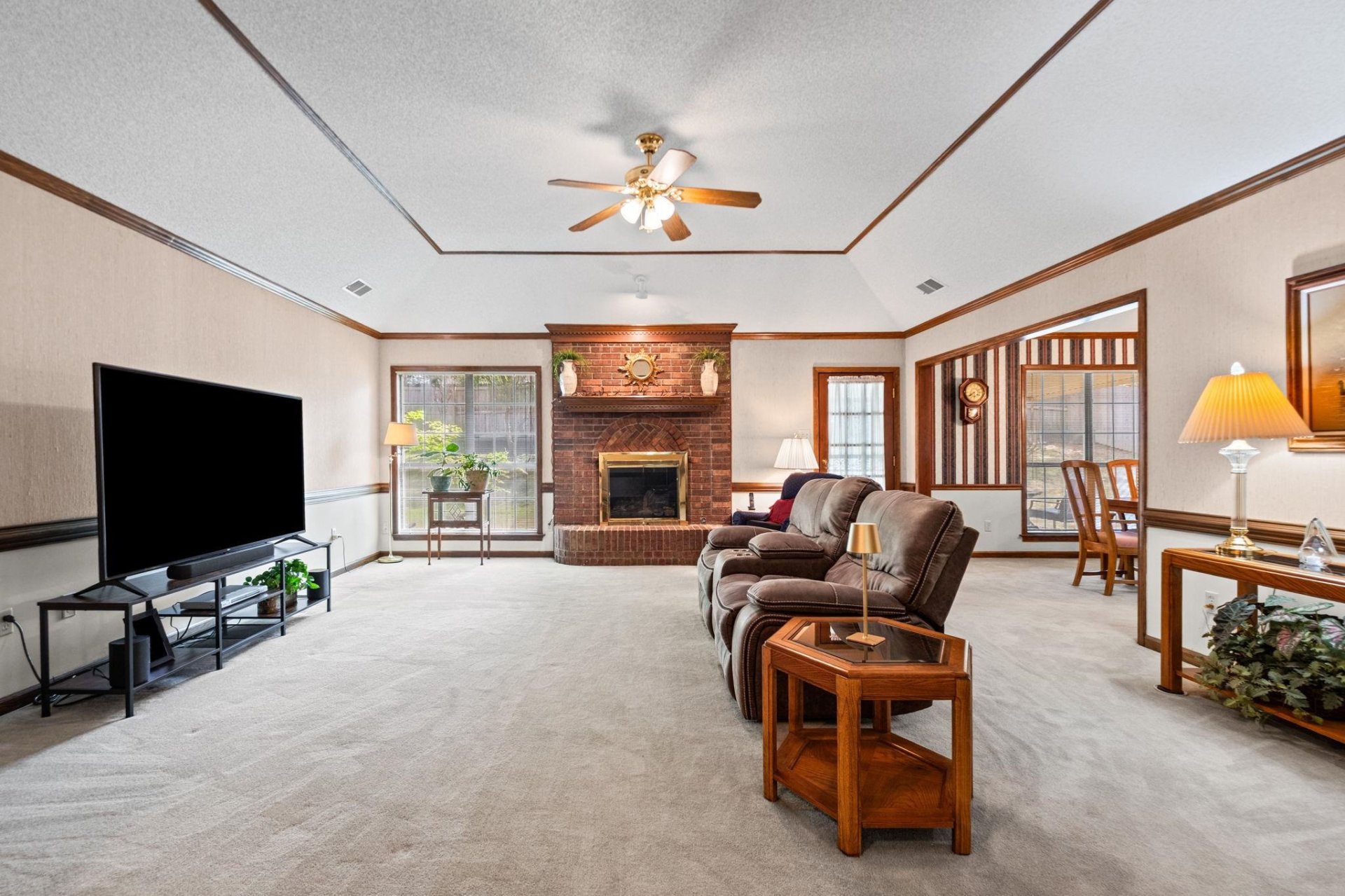 | Fireplace | Masonry, Vented Gas Fireplace, In Den/Great Room, Gas Starter, Gas Logs, Glass Doors |
