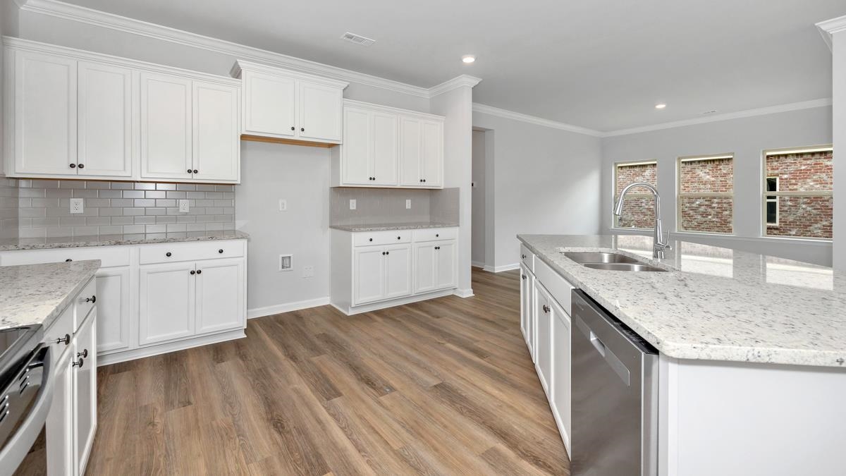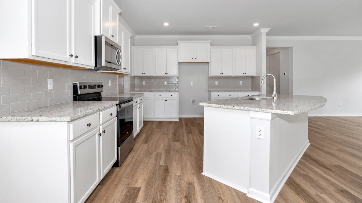 Home features 4 Bedrooms, 3 baths, 3 Car Garage, walk-in closet in primary, open floor plan, and covered back porch. Beautiful, all new community. Riverwood Gardens - Ready July 2025. Up to $10,000 closing costs paid with Special Below Market Rate through DHI Mortgage. Includes blinds, SmartHome package, gas range, microwave, dishwasher, and refrigerator! Community pool, lakes, pickleball courts & dog park!!!