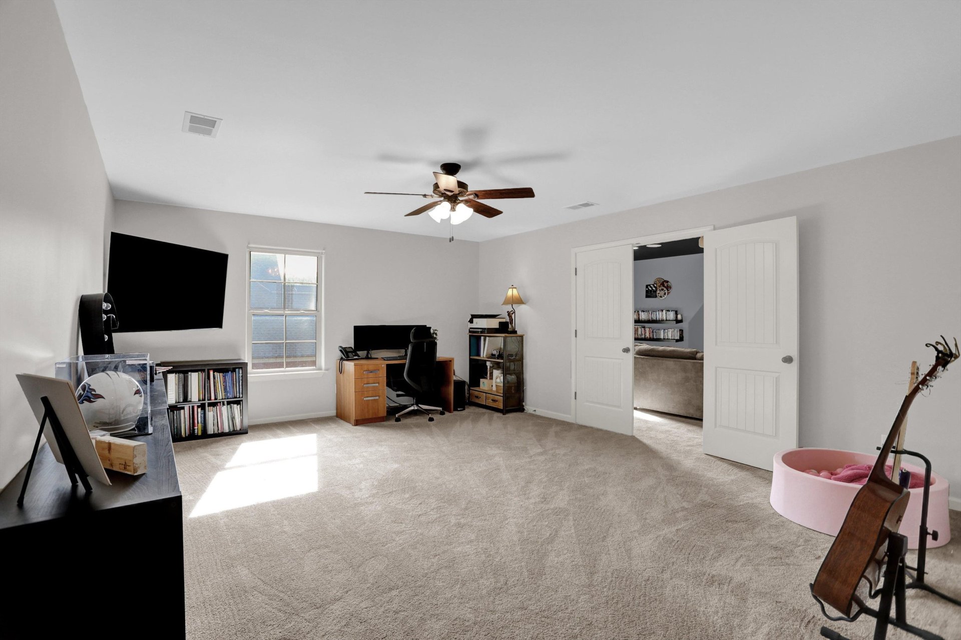 Welcome to this beautifully maintained 4-bedroom, 3-bath home tucked away in a quiet cove in Bartlett! This spacious layout features 3 bedrooms and 2 full baths downstairs, offering convenience and flexibility, while upstairs includes an additional bedroom, full bath, and a huge bonus room—perfect for a playroom, office, or guest retreat. The kitchen boasts granite countertops and flows seamlessly into the main living areas. Enjoy outdoor living with a covered patio overlooking a large, fully wood fenced backyard. A Tuff Shed remains for extra storage, and some media room equipment stays—making this home move-in ready for entertaining! Additional highlights include a generously sized laundry room and plenty of space throughout. Don’t miss this one!