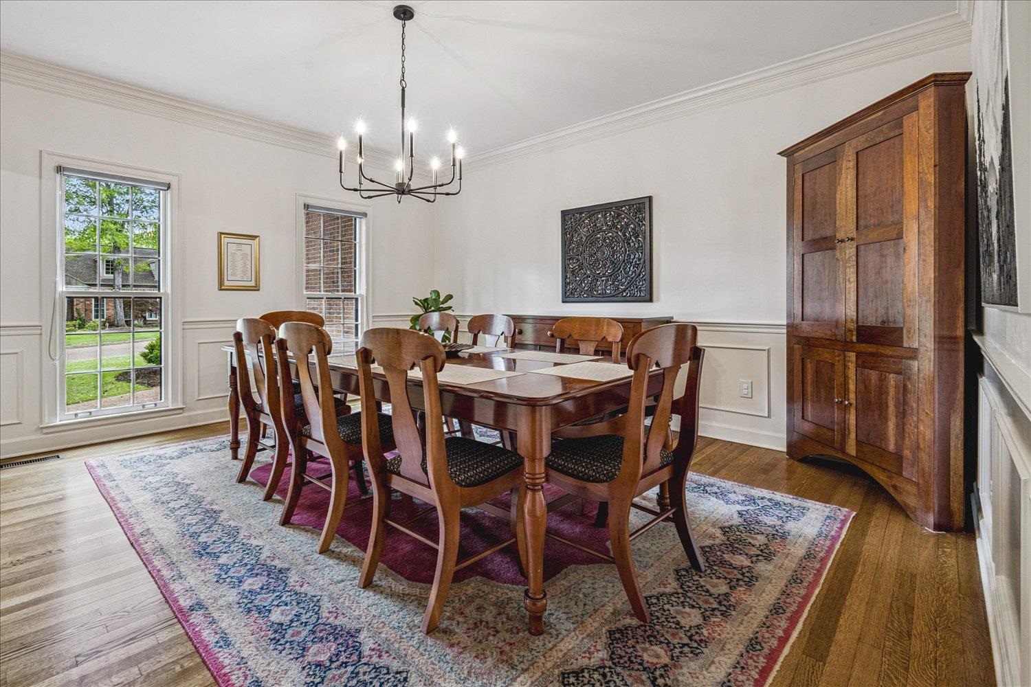 Beautifully updated traditional home in the heart of Germantown! Timeless charm paired with thoughtful updates throughout. Step inside to find refinished hardwood floors (2023), spacious living areas, and abundant natural light. The kitchen features updated appliances including a new range and refrigerator (2023) and a new dishwasher (2024), along with generous counter space and a large island perfect for entertaining. Enjoy multiple living spaces, including a warm and inviting den with built-ins and fireplace, ideal for relaxing or hosting guests. New roof (2022) and four HVAC systems with one main-level unit replaced in 2024. The finished basement includes a dedicated weight room, perfect for fitness and additional flexible living space. Outside, the beautifully landscaped, fully fenced backyard provides a private retreat—perfect for gatherings, pets, or play.