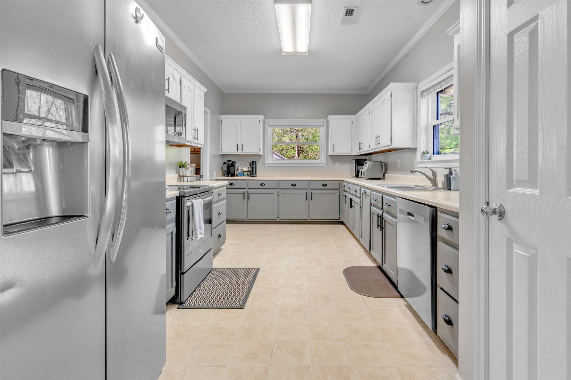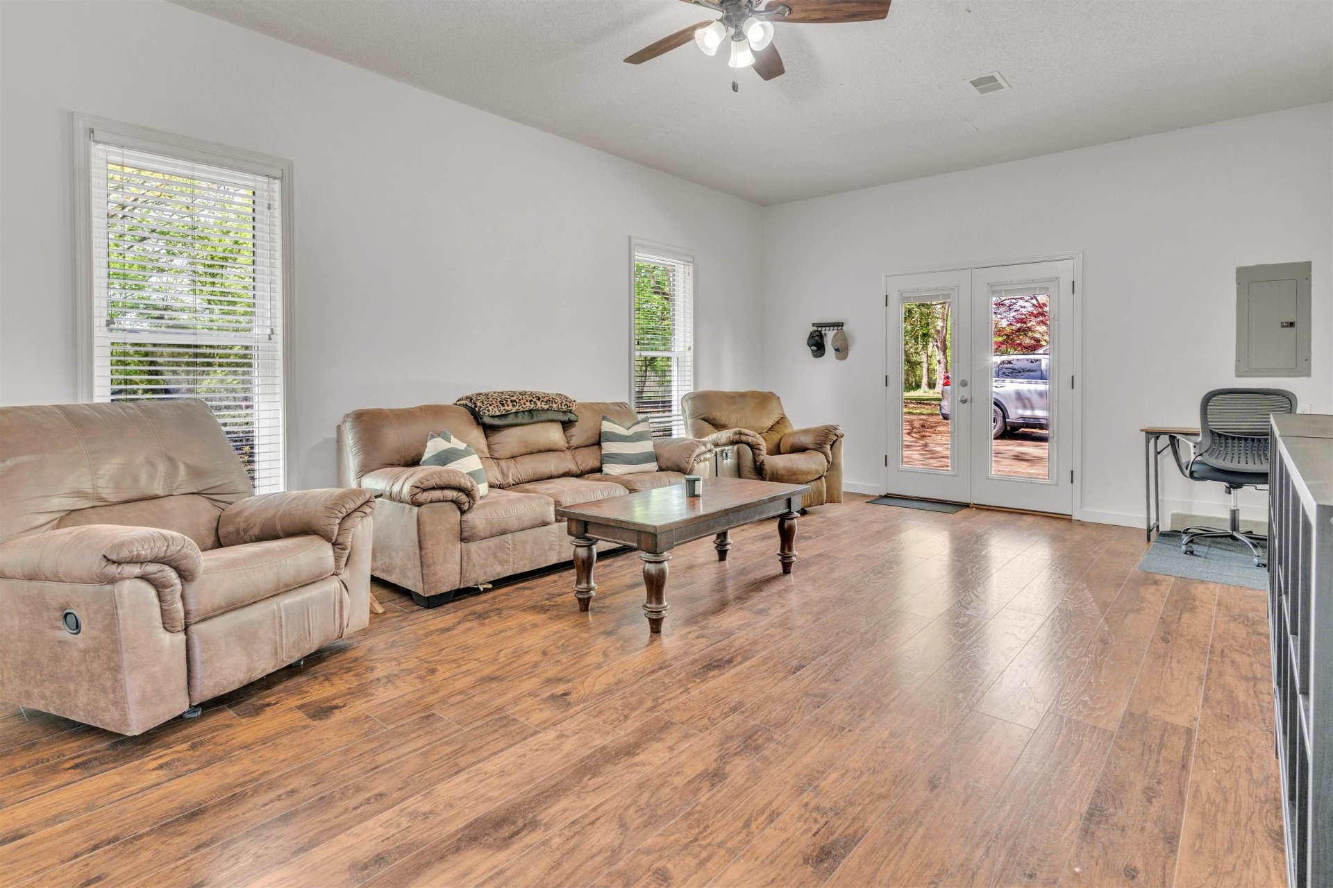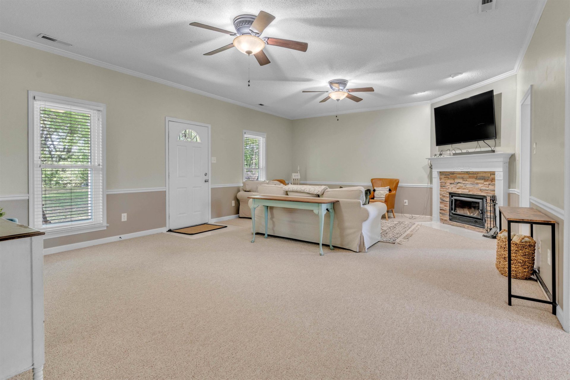 Rare find at an affordable price in Oakland! This ~2000 sq ft home on a half-acre lot offers space, flexibility, and everyday value. Enjoy a covered front porch with swing and a fully fenced backyard—perfect for kids, pets, or entertaining. Inside features a functional open layout with a large great room and wood burning fireplace, plus an updated kitchen with stainless steel appliances and refrigerator remains! This well-maintained home has been loved and cared for, with durable, high-quality Berber carpet throughout. The garage has been converted into heated and cooled living space—ideal for a bonus room, playroom, or flex room. Dining room can be easily converted to a third bedroom if needed. Energy-efficient windows from Windows USA include a 50-year warranty. Low-maintenance brick and vinyl exterior, plus recently professionally washed roof!
