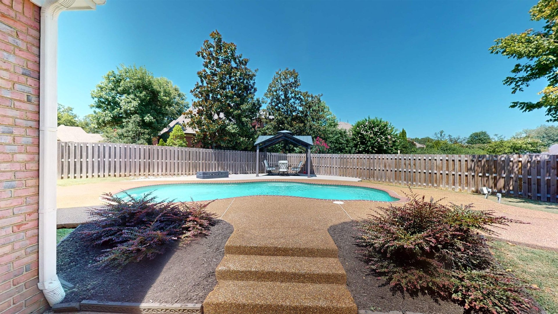 Tucked away on a quiet cove in Germantown’s coveted 38138 zip code, this beautifully maintained 5-bedroom, 3-bath home offers over 4,100 square feet of space, comfort, and versatility. From the moment you step inside, refinished hardwood floors and a flowing, functional layout set the tone. Two bedrooms on the main level—including a spacious primary suite—provide the ideal setup for multi-generational living, guests, or a private home office. The heart of the home is the open kitchen and hearth room, anchored by a cozy fireplace and designed for everyday living and effortless entertaining—from casual weeknight dinners to game days and holiday gatherings. Upstairs, additional bedrooms and flexible space offer room to grow, work, or unwind. Step outside and discover your private, resort-style backyard—complete with a gunite pool, covered patio, gazebo, and expansive lawn, perfect for play, pets, or relaxing evenings under the stars. Interest is popping so get in here today!
