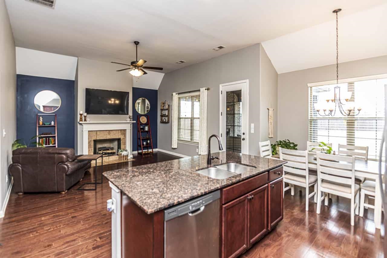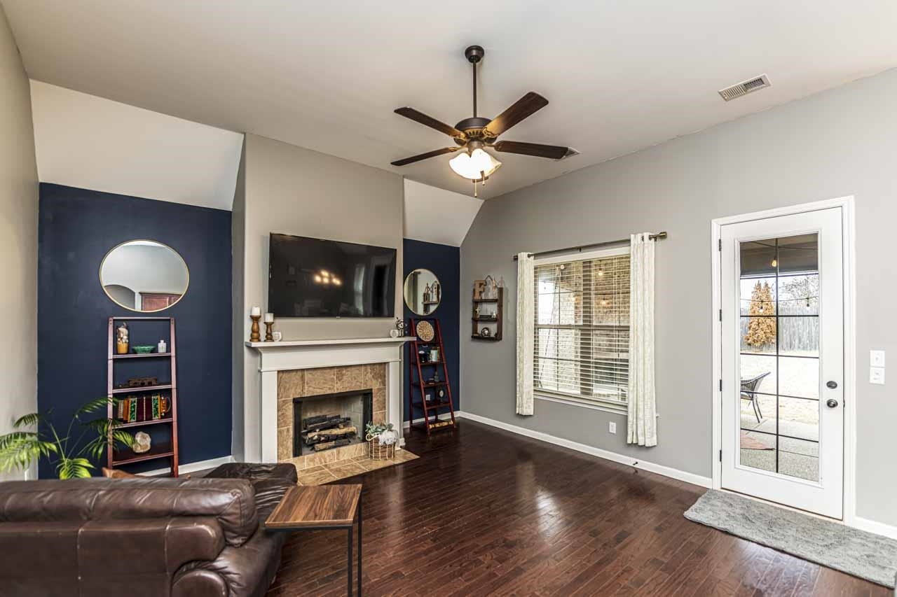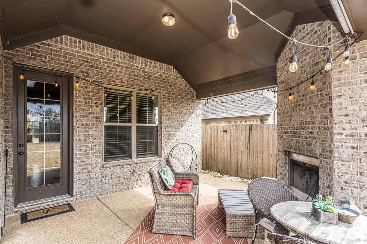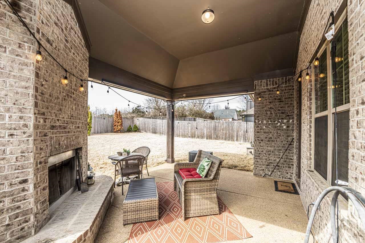 This wonderful home is hitting the market just in time for a spring closing ! Built by Regency Homes in 2019, the clever Hampton floorplan features a charming front entry, open space great room, kitchen and dining area . Elevated ceilings throughout, granite counters in kitchen & baths, designer cabinets, oak hardwood flooring, all kitchen appliances remain, including the refrigerator. You have a split bedroom layout with 3 bedrooms and 2 baths , with the primary bedroom/ luxury bath featuring a large walk- thru closet wrapping around to the laundry room - very convenient ! Low maintenance home with brick exterior & wood fenced backyard. One of the best perks, is the 17x14 outdoor vaulted entertaining space with a fireplace ! 1 year home warranty included . Super low taxes and close to schools, shopping, restaurants, activities, and healthcare.