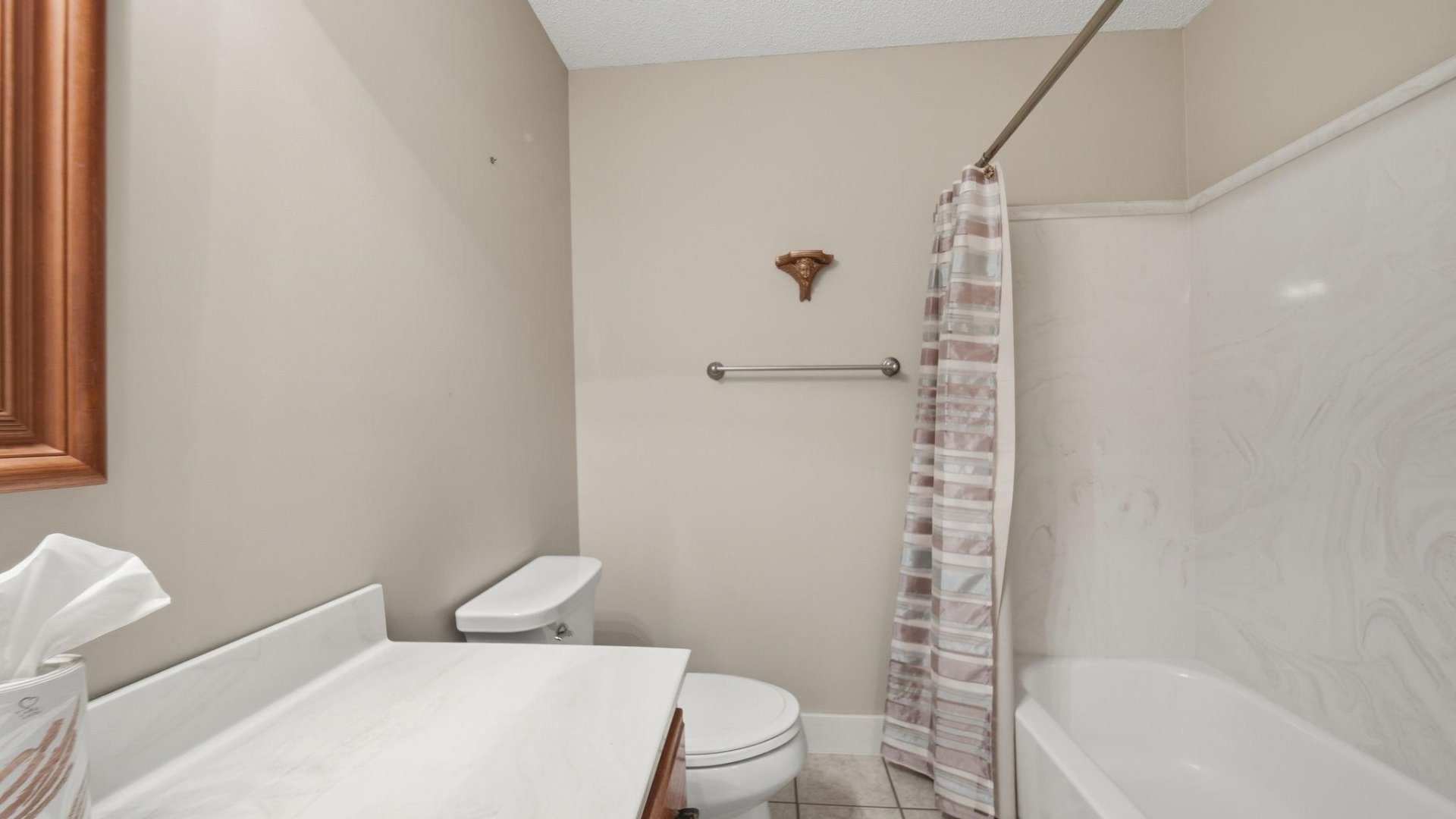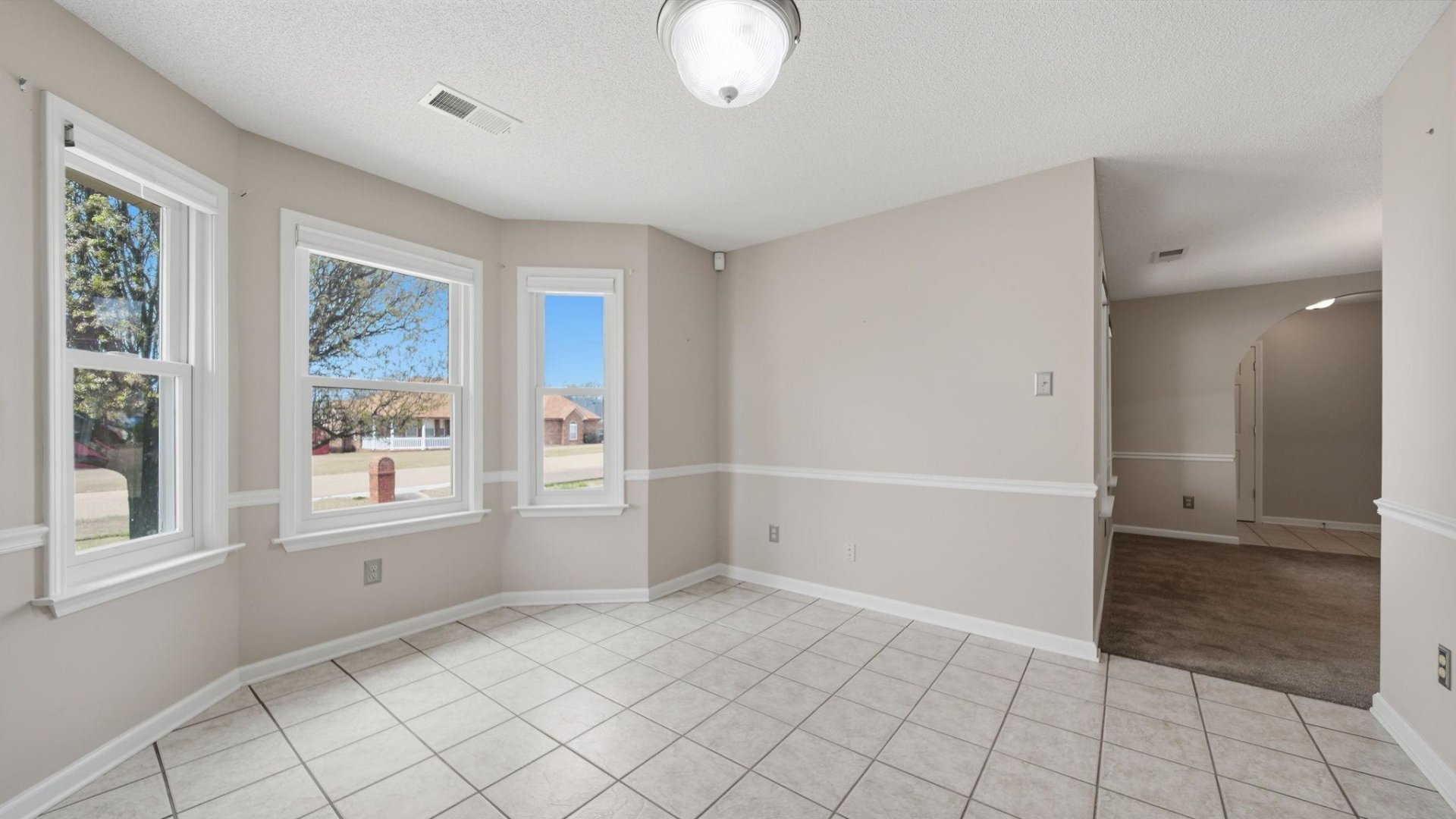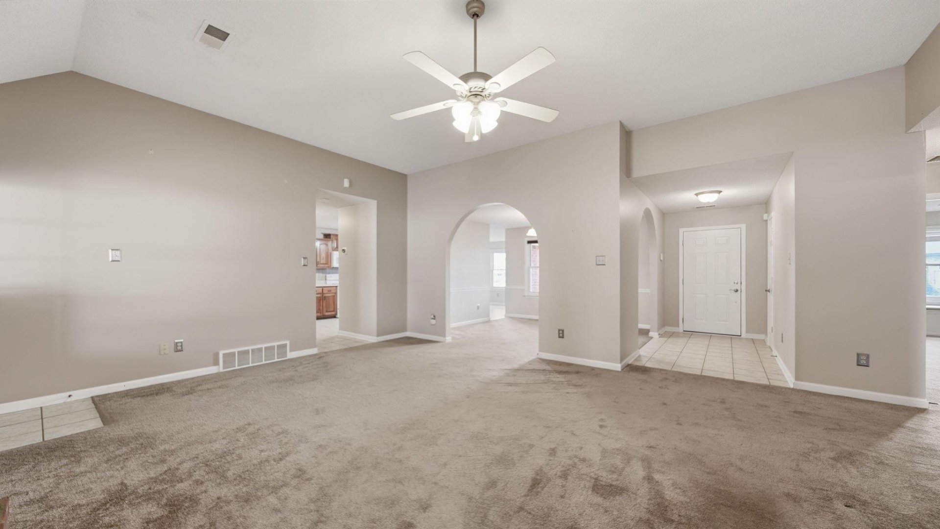 | Flooring | Part Carpet, Tile, Sprayed Ceiling, 9 or more Ft. Ceiling |